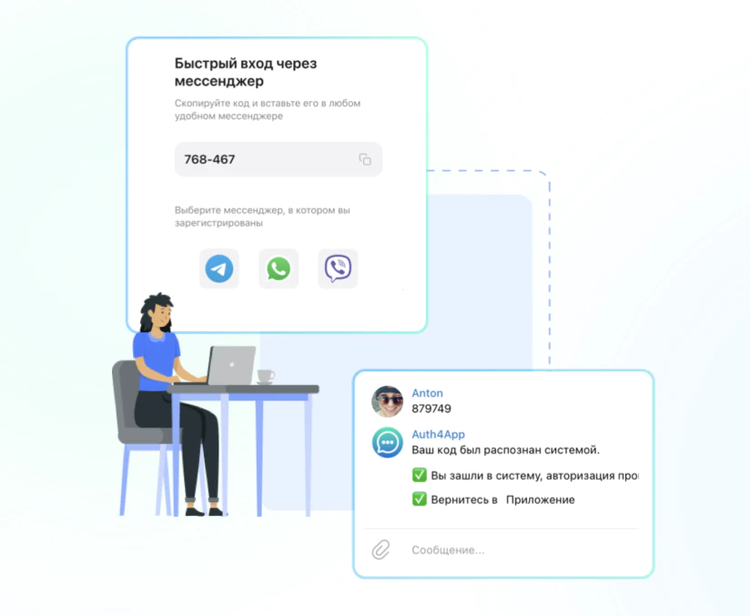 L'autenticazione tramite messenger (WhatsApp, Telegram, Viber) è il processo di autorizzazione più veloce e conveniente per il tuo servizio inviando un codice in qualsiasi messenger attualmente utilizzato dalla stragrande maggioranza dei possessori di smartphone. In questo caso, l'utente non deve inserire alcun dato e l'autorizzazione viene semplificata con pochi tocchi sullo schermo.
